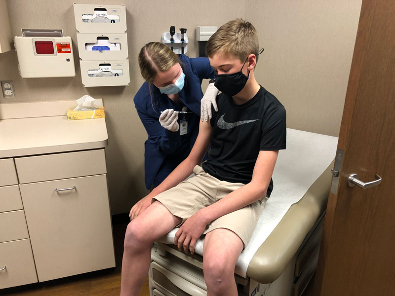 Drew Pociask, 12, got his COVID-19 vaccine at Sanford Health in Sioux Falls, South Dakota, May 12, 2021, the same day the CDC approved the Pfizer vaccine for ages 12 and up. (Simon Floss, Sanford Health)