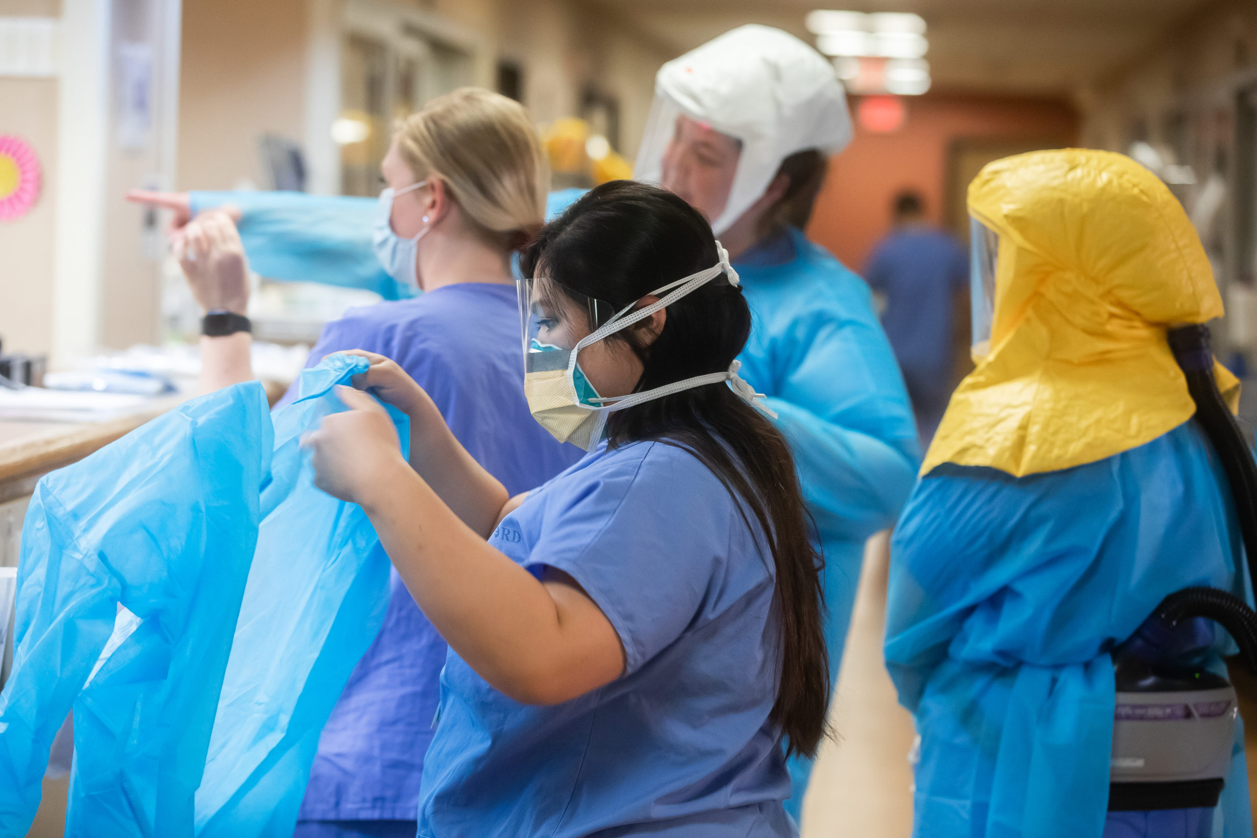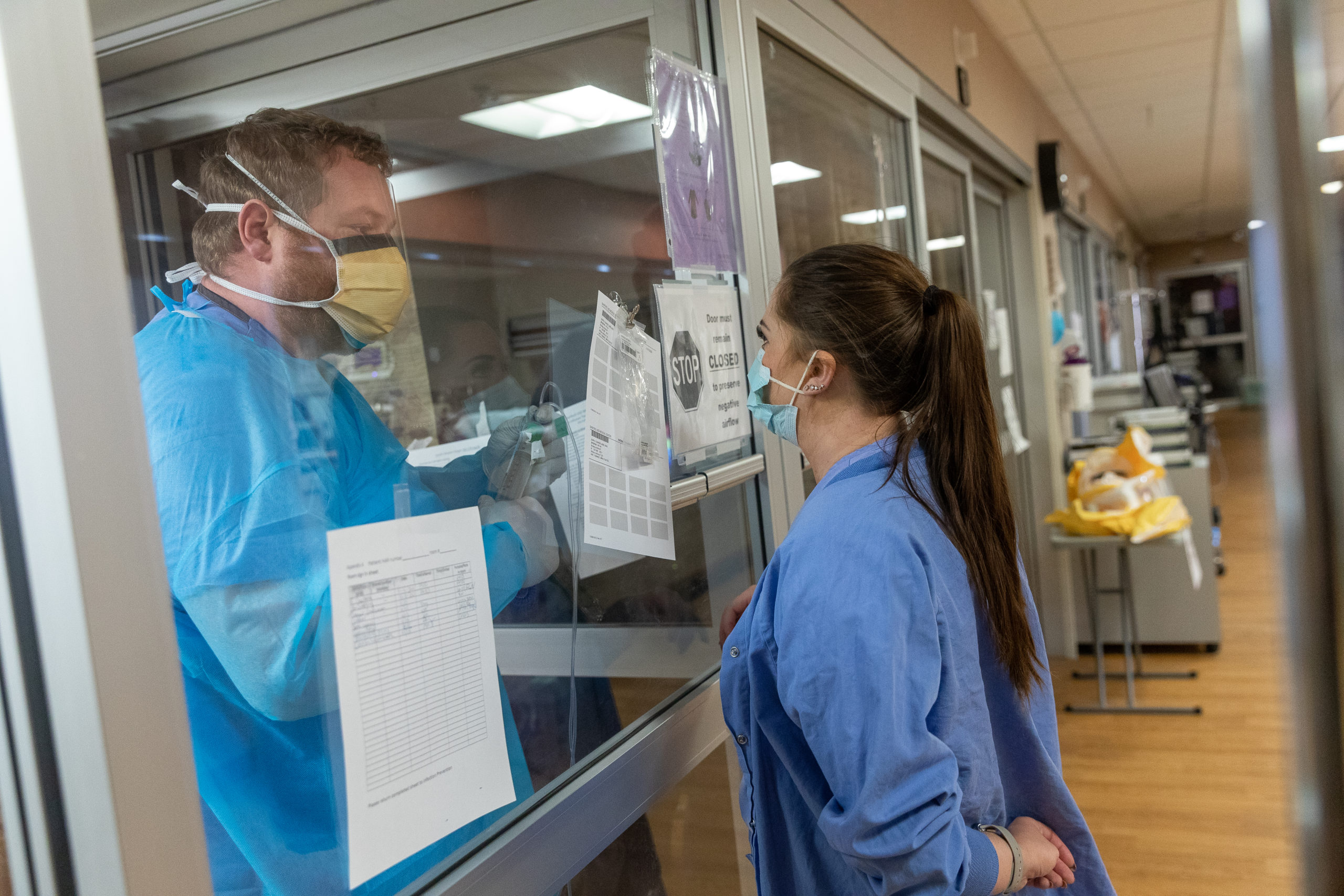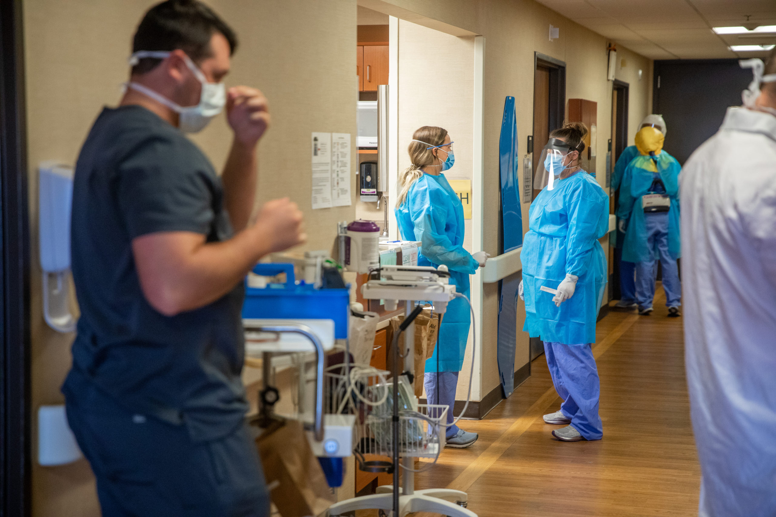 Sanford Health employees in the Covid Unit on Tuesday, Nov. 17, 2020 in Sioux Falls, S.D. (Jay Pickthorn, Sanford Health News)