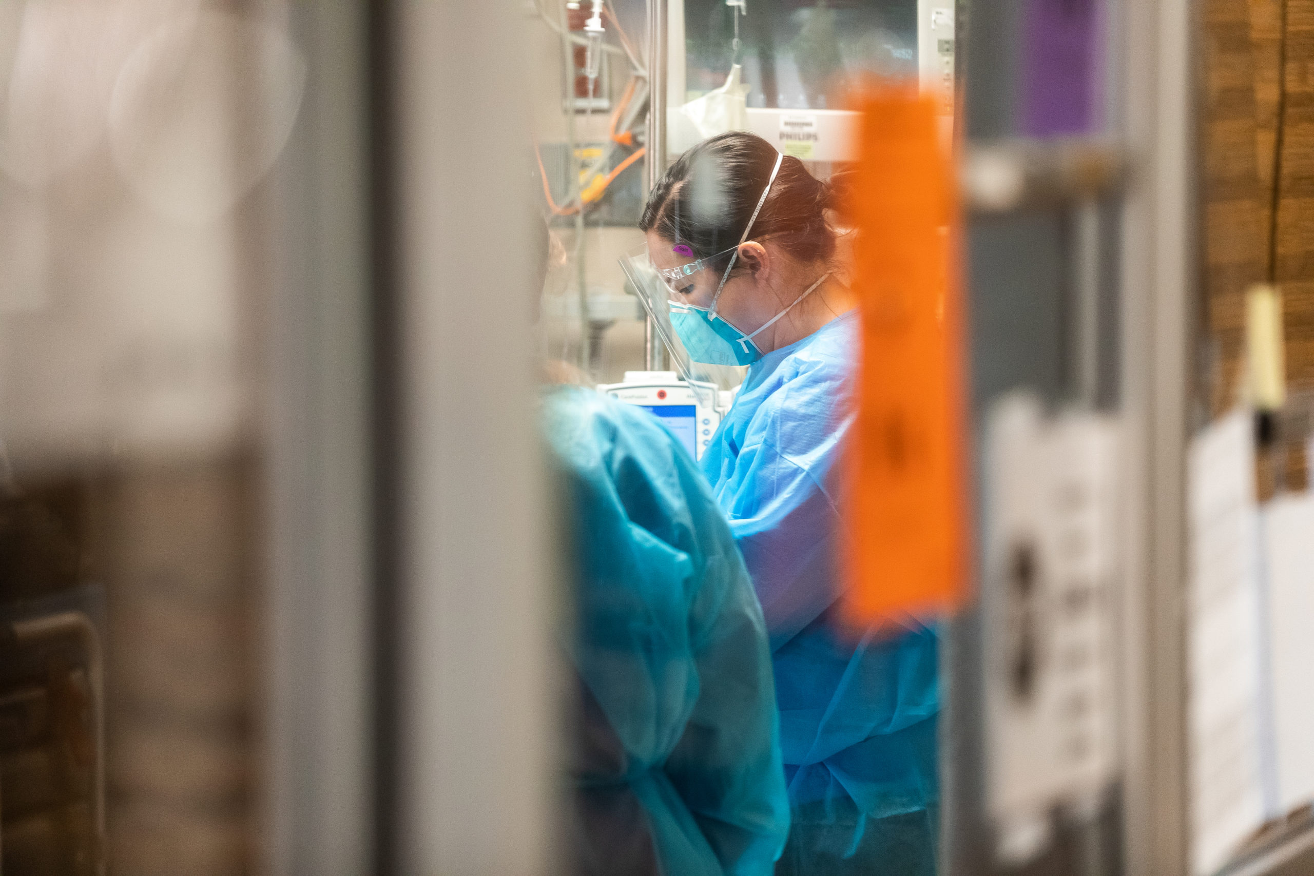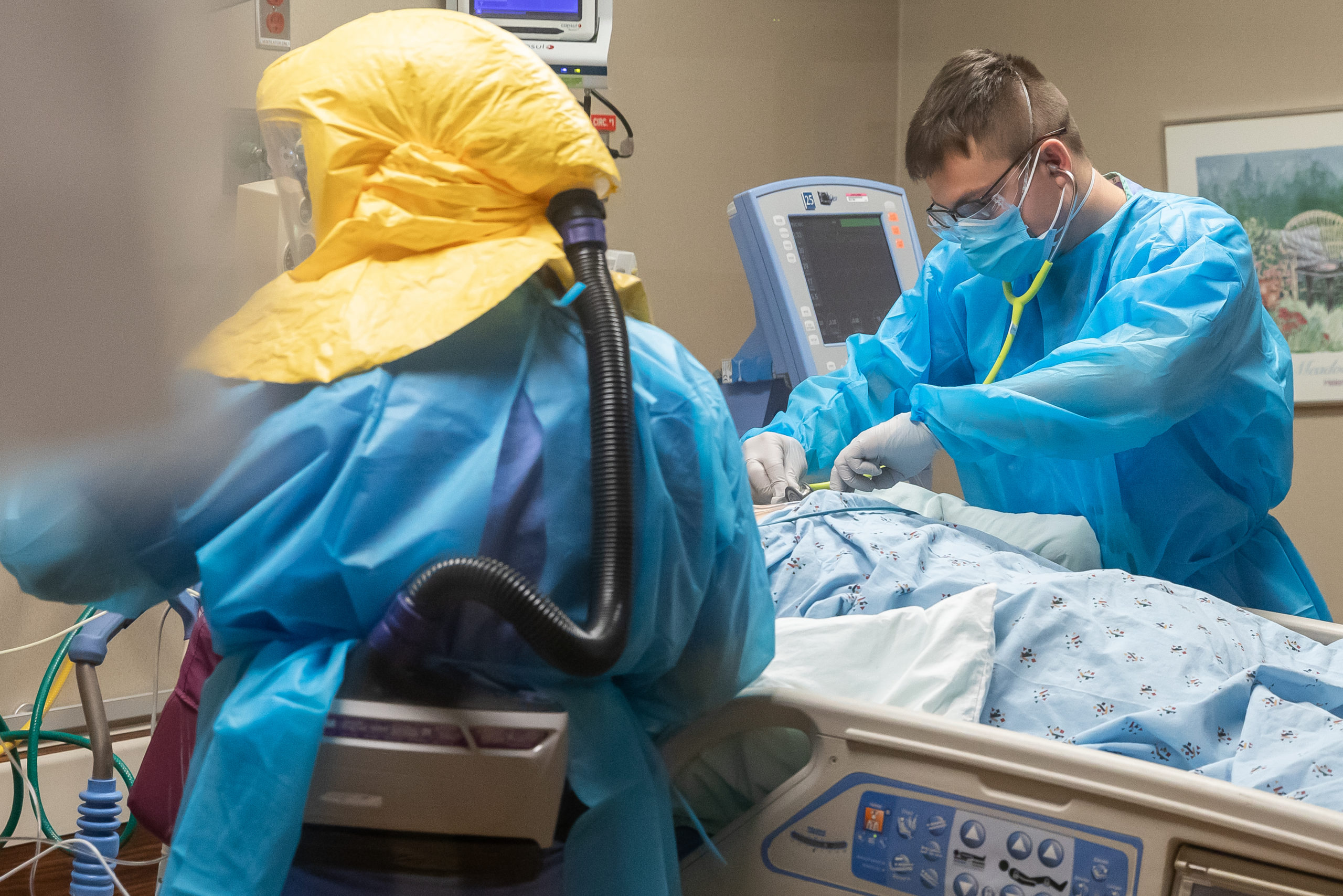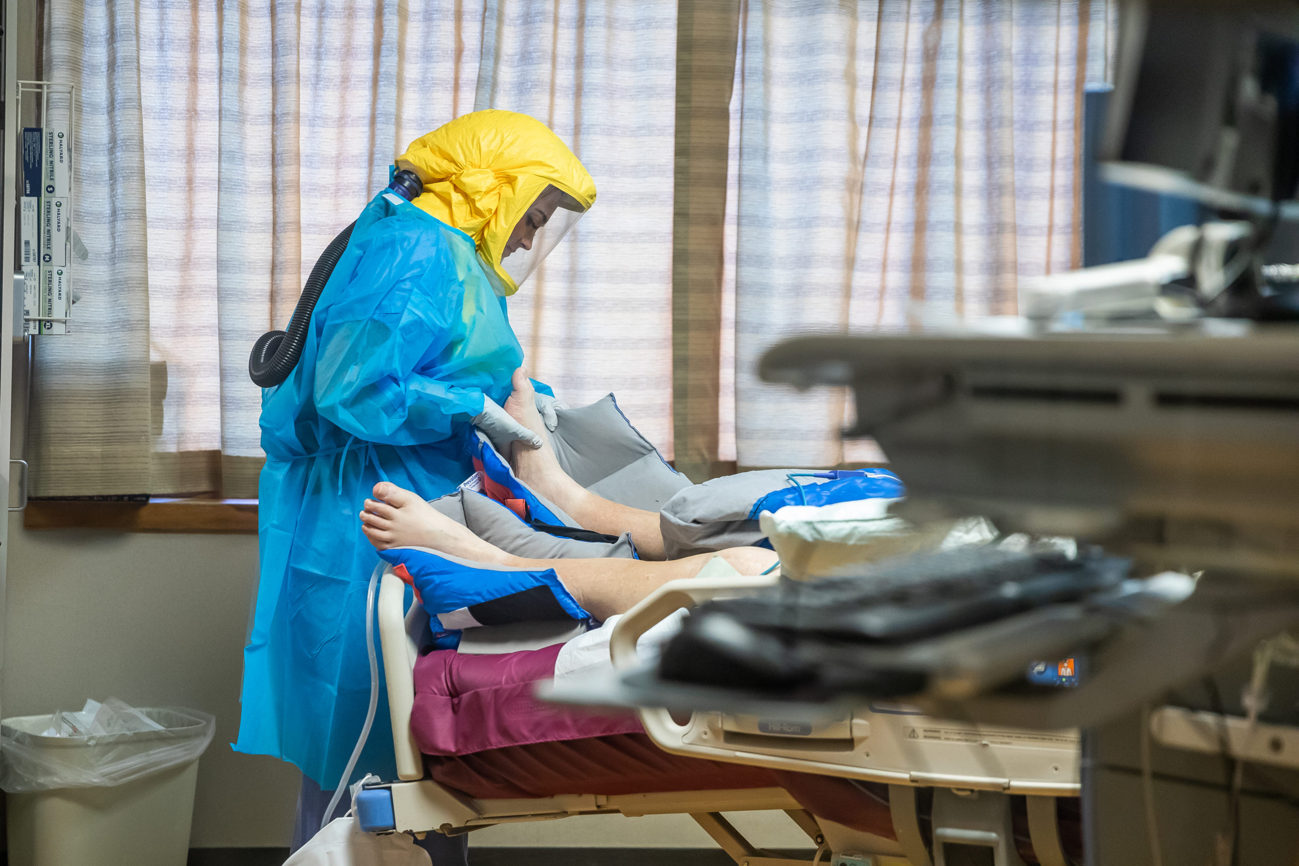 Sanford Health employees in the Covid Unit on Tuesday, Nov. 17, 2020 in Sioux Falls, S.D. (Jay Pickthorn, Sanford Health News)