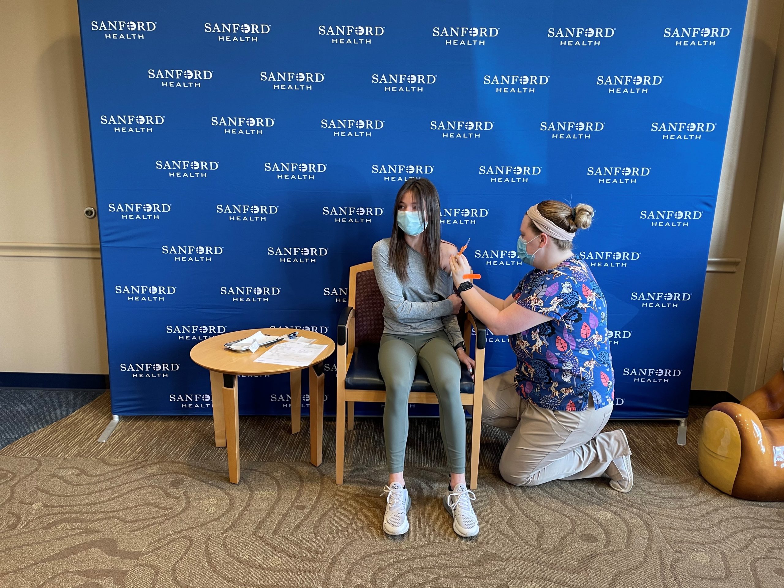Avery Will, 15, gets her COVID-19 vaccine at Sanford Health in Bismarck, North Dakota, May 18, 2021. (Erin Johnson, Sanford Health)