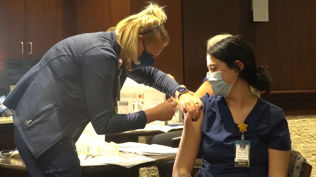 One of the first COVID-19 vaccines at Sanford Medical Center Fargo, North Dakota, Dec. 14, 2020. (Nathan Aamodt, Sanford Health)